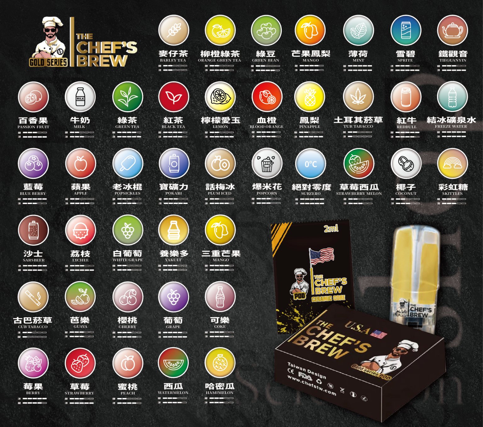 廚師佳釀煙彈的口味種類繁多,以下列舉部分熱門口味,並提供簡單的口味描述: