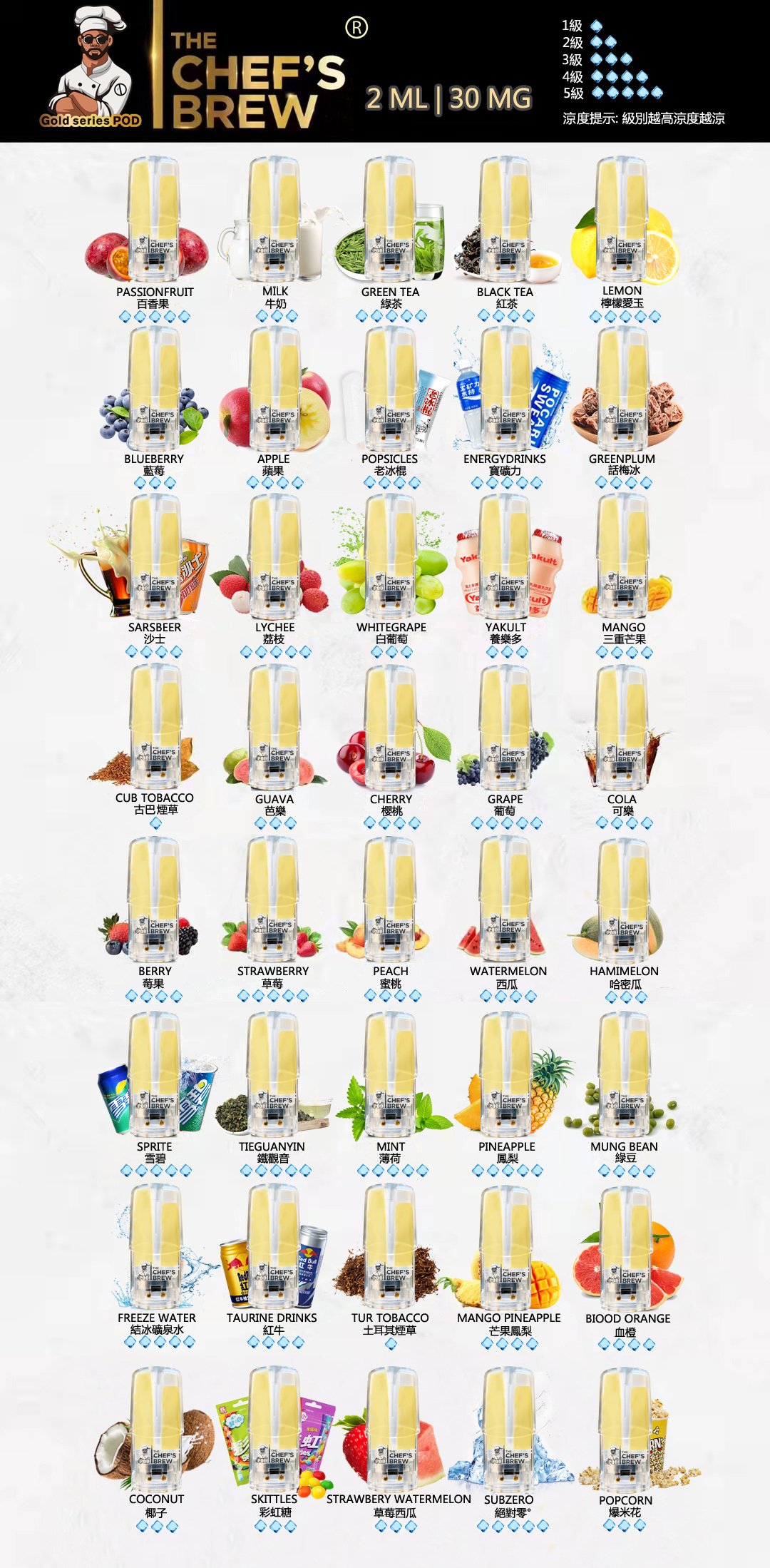 • 平價親民: 相較於其他品牌,廚師佳釀煙彈的價格更為親民,讓更多消費者能夠輕鬆享受電子煙的樂趣。